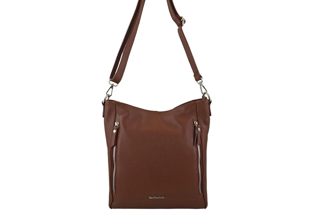 Praktyczna skórzana torebka na ramię - Brązowa