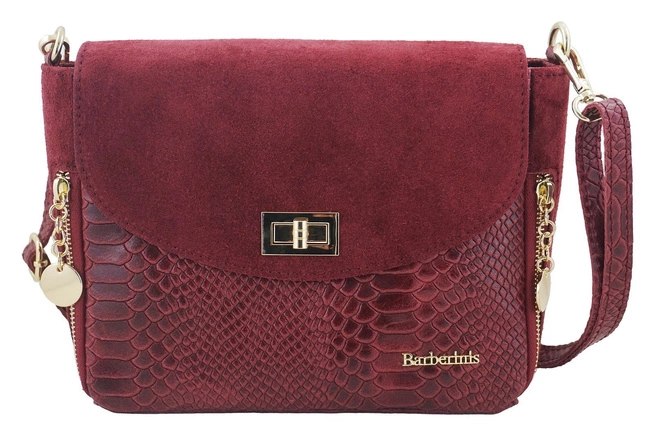 Semišová kabelka se zlatými ozdobami - bordó