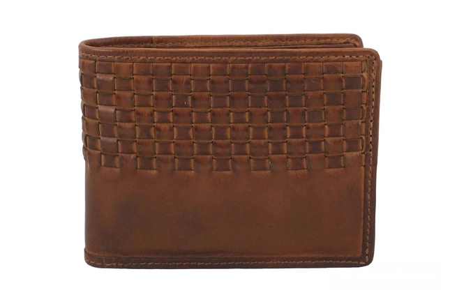 Vnitřek peněženky: k dispozici v nejnovější kolekci stylová pánská kožená peněženka bez zapínání. Tento model se vyznačuje pleteným vzorem v horní části peněženky. Uvnitř je místo na průkaz totožnosti a platební kartu a kapsa na mince. Uprostřed je zip na velkou a širokou kapsu; pod kapsou na mince je navíc skrytá kapsa/úložný prostor. Zapínací část má dvě velké přihrádky na doklady a fotografie, šest přihrádek na kreditní karty a dvě přihrádky na bankovky, nákupní seznamy nebo vstupenky; v této části peněženky je také malá kapsa / úložný prostor. Stylová pánská kožená peněženka je k dispozici ve třech klasických barvách: černé, hnědé a tmavě hnědé. Prohlédněte si širokou nabídku peněženek vyrobených s důrazem na detail z vysoce kvalitní pravé kůže.
