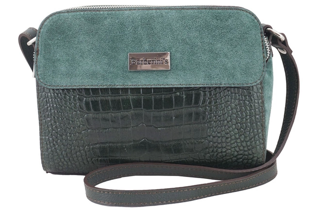Klasický střih zdobí semišová klopa a zvířecí motiv croco na přední straně kabelky.