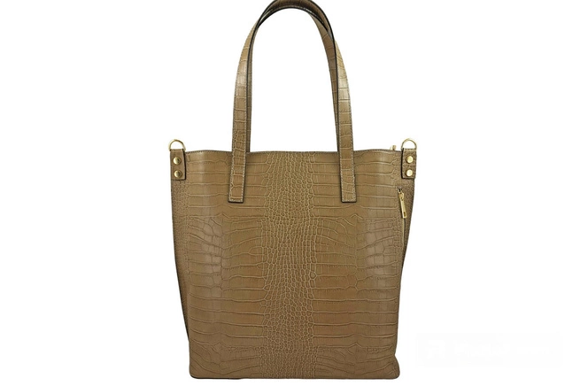 Wnętrze torebki: wygodna duża torebka damska shopper, mieszcząca format A4 jest jednokomorowa, wnętrze jest wykończone podszewką. Wewnątrz znajduje się mała zasuwana kieszonka mieszcząca drobne kosmetyki. Praktyczna duża torebka damska shopper jest zasuwana, posiada złote okucia, dwa wygodnej długości uchwyty bez regulacji (dł. 55cm, wys. 25cm) oraz dopinany pasek z regulacją (maksymalna dł. 120cm, maksymalna wys. 65cm). Pionowa zasuwana kieszeń z przodu torebki mieści telefon, klucze oraz niewielki portfel. Dodatkowo, na usztywnionym spodzie torebki, znajdują się metalowe stopki chroniące przed zarysowaniem / uszkodzeniem skóry.