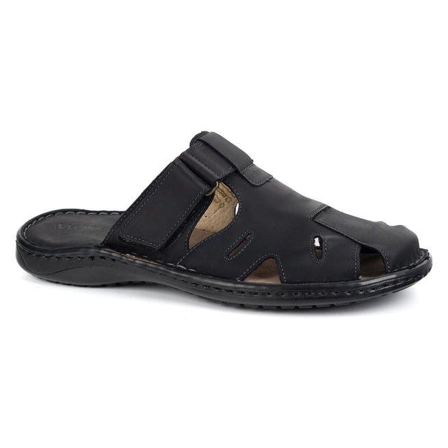 Wasak pánské kožené žabky na suchý zip 0223W black