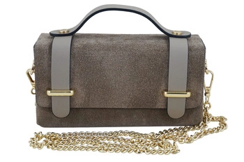 Malá semišová poštovní taška se zlatým zapínáním - Hnědá tmavá