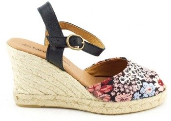 Sandały damskie na rzep model 0853, brązowe z kwiecistym motywem