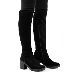 Černé semišové zateplené boty Margaret s jehlovým podpatkem