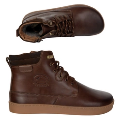 Pánské zimní zateplené kožené boty barefoot široké 755MP tmavě hnědé