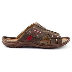 Skórzane klapki męskie ŁUKPOL model 866 brązowe