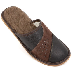 Klapki pantofle męskie skórzane kapcie góralskie ocieplane M87 ciemny brąz