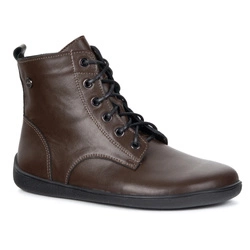 Botki damskie BAREFOOT skórzane 1795POL – ocieplane, sznurowane z zamkiem brązowe