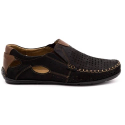 Buty męskie mokasyny skórzane 901 lato czarny z brązem