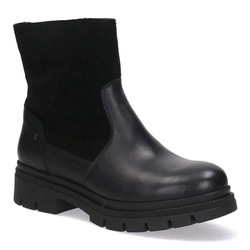 Skórzane botki damskie Pollonus czarne lico/ welur 5-1241-002