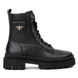 Trzewiki damskie sznurowane skóra czarne BUTDAM TRW