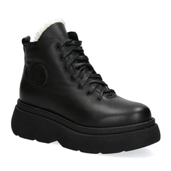 Botki damskie skórzane na grubej podeszwie Pollonus czarny 5-1567-009