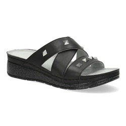 Modne skórzane klapki damskie DK6924 czarne złote elementy