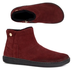 Damskie botki barefoot zimowe skórzane ocieplane futerkiem Olivier 202MP bordowe