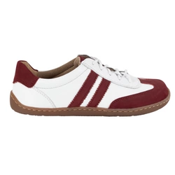 Buty BAREFOOT damskie skórzane minimalistyczne 1287 białe z bordowym nubukiem sneakersy