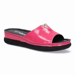 Modne skórzane klapki damskie różowe Pollonus 5-1617-002