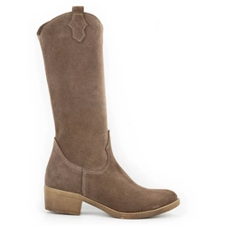 Kozaki zamszowe ocieplane na słupku Margaret ciemno beżowe