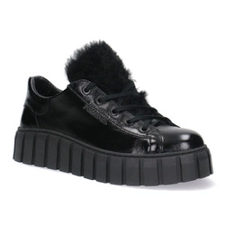 Skórzane trampki damskie Pollonus czarny naplak 5-1578-005