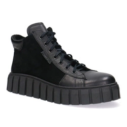 Skórzane półbuty damskie na grubej podeszwie Pollonus czarny 5-1371-006