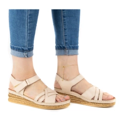 Sandały damskie skórzane Wasak 0719W beżowe – na koturnie, z regulacją i skórzaną wkładką