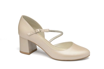 Buty ślubne skórzane na niskim obcasie z ozdobnymi paseczkami beż BUTDAM