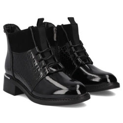 Skórzane botki damskie Filippo czarne lakierowane DBT7223