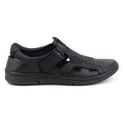 Buty męskie skórzane wsuwane przewiewne na rzep 312KZ CZARNE
