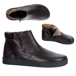 Buty męskie barefoot zimowe skórzane 756MP polskie obuwie z naturalnej skóry ocieplane brązowe