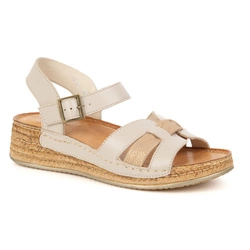 Sandały damskie skórzane Wasak 0719W beżowe – na koturnie, z regulacją i skórzaną wkładką