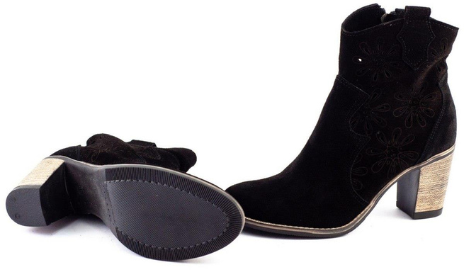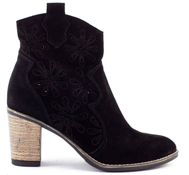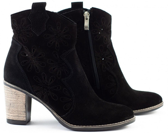 Zamszowe botki na obcasie ażurowe Lena czarne