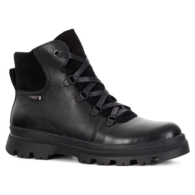 Model został wykonany z naturalnej skóry, dzięki czemu łączy trwałość z estetycznym wyglądem. Wysoka cholewka stabilizuje stopę i chroni ją w chłodniejsze dni, a miękka wyściółka wewnętrzna podnosi komfort użytkowania. Sznurowanie w stylu trekkingowym zapewnia pewne dopasowanie, a boczny zamek ułatwia szybkie zakładanie i zdejmowanie butów.