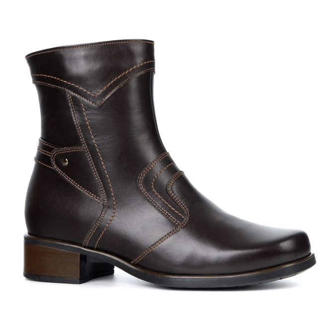 Botki damskie skórzane ocieplane z zamkiem 888BB brązowe