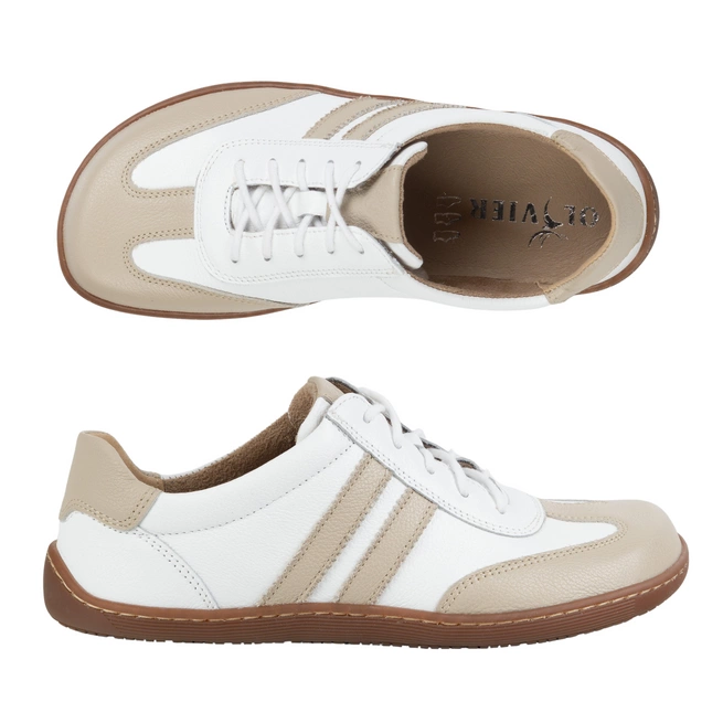 Buty BAREFOOT damskie skórzane minimalistyczne 1287 białe z beżem sneakersy