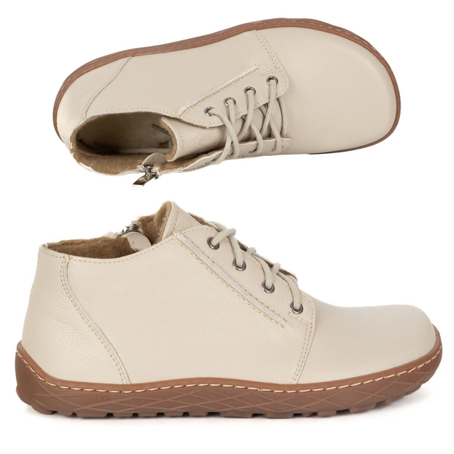 Buty damskie skórzane BAREFOOT lekko ocieplone za kostkę z zamkiem 787/2 beżowe