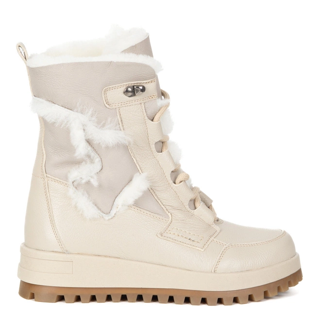 Buty damskie zimowe Olivier Clara beżowe skórzane ocieplane wełną owczą
