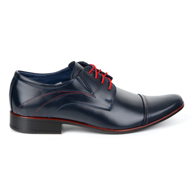 Buty męskie wizytowe granatowe 238lu skórzane z czerwonymi sznurówkami