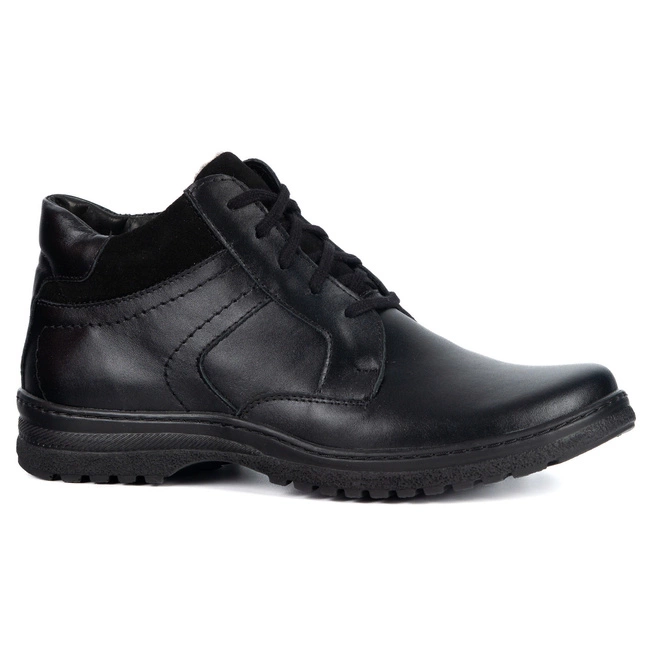 Model KOMODO 907K to zimowe trzewiki skórzane dla mężczyzn poszukujących praktycznego, trwałego obuwia do codziennego noszenia w sezonie zimowym. Naturalna skóra i wewnętrzne ocieplenie gwarantują komfort cieplny, a klasyczny fason pasuje do wielu stylizacji.