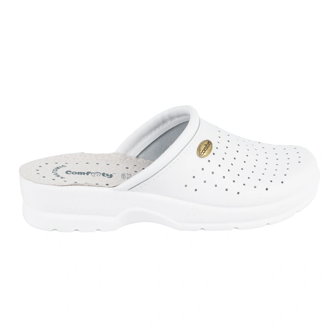 Comfooty Alessia klapki damskie skórzane anatomiczne ażurowe białe
