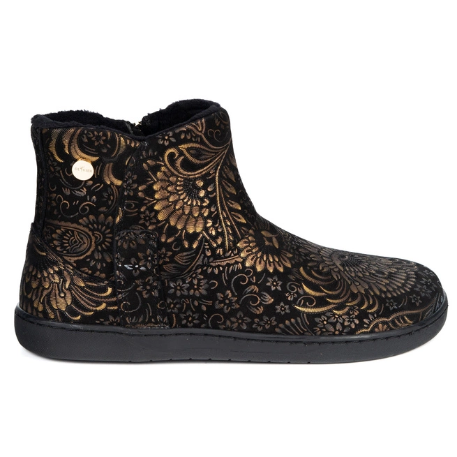 Damskie botki barefoot zimowe skórzane ocieplane futerkiem Olivier 202MP kwiaty złote