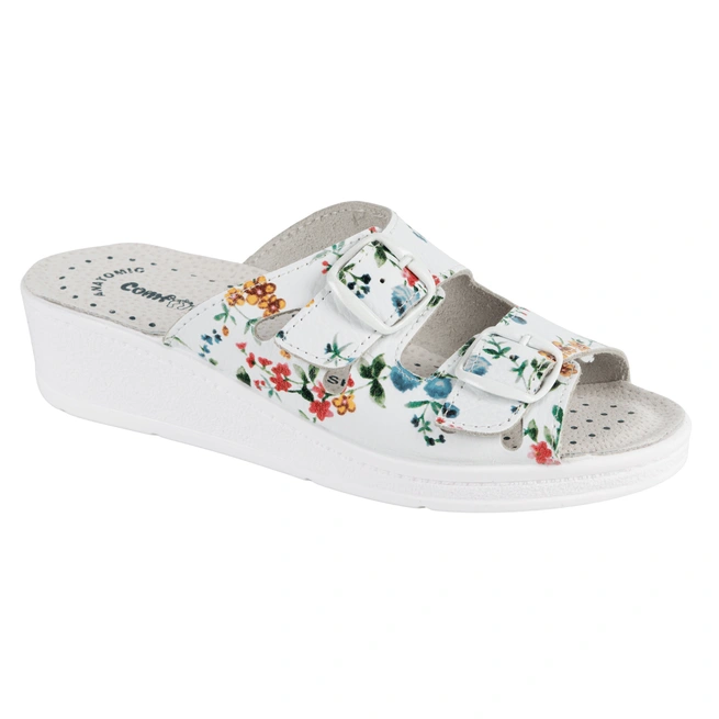Damskie klapki medyczne skórzane regulowane MIA w kwiaty