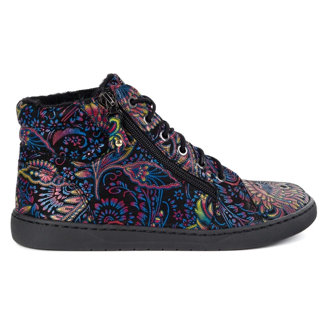 Damskie skórzane buty zimowe barefoot minimalistyczne model 1293 czarne z wzórem etniczny chabrowym