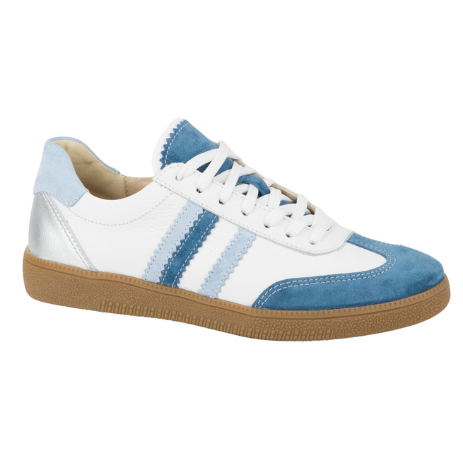 Buty marki Olivier to stylowa propozycja dla miłośników wygody i miejskiego luzu. Wykonane z wysokiej jakości skóry naturalnej, łączą sportowy charakter z klasycznym wykończeniem. Biało-niebieskie akcenty i gumowa podeszwa w kolorze karmelu nadają im delikatnie retro wygląd, który świetnie wpisuje się w aktualne trendy.