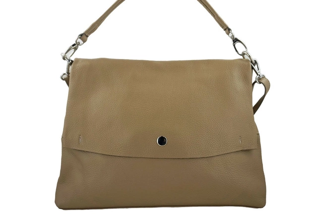 Duża torebka klasyczna ze skóry naturalnej miękkiej - Beżowa