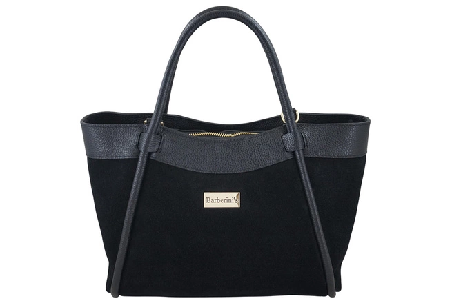 Elegancka torebka ze skóry zamszowej w kolorze czarnym została wykonana z wysokiej jakości skóry naturalnej. Dostępna w najnowszej kolekcji, w kilku kolorach - beżowym, bordowym oraz w stonowanych odcieniach brązu, elegancka torebka kuferek ze skóry zamszowej to propozycja dla kobiet ceniących ponadczasowy styl, wysoką jakość oraz funkcjonalność. Model wykonany został z połączenia miękkiej, przyjemnej w dotyku skóry zamszowej oraz trwałej skóry licowej, dzięki czemu prezentuje się wyjątkowo elegancko i jednocześnie zachowuje odporność na codzienne użytkowanie. Średni rozmiar kuferka sprawia, że torebka jest praktyczna na co dzień – pomieści niezbędne akcesoria, pozostając przy tym poręczna i wygodna. Dzięki neutralnej kolorystyce i ponadczasowej formie pasuje na spotkania biznesowe, do pracy, na uczelnię, a także na wieczorne wyjścia.
