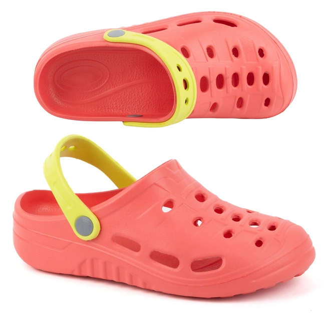 Model dostępny w rozmiarach 36–41 będzie odpowiedni zarówno dla kobiet, jak i starszych dzieci. Zabudowany zapiętek z paskiem można przesunąć do przodu i nosić klapki również w wersji wsuwanej. Ażurowa cholewka pozwala stopom oddychać, co szczególnie docenią osoby aktywne i często przebywające na słońcu. Klapki są lekkie, kompaktowe i zmieszczą się w każdej walizce czy torbie plażowej – to praktyczny wybór na wyjazdy, urlop czy weekendowy wypad za miasto.