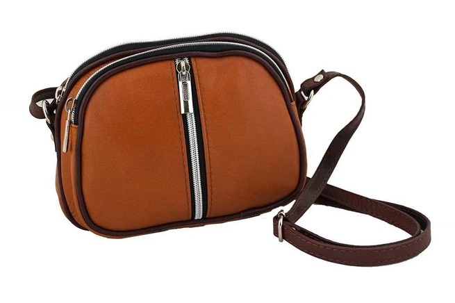 Wnętrze listonoszki: wnętrze wykończone podszewką, podzielone na trzy osobne kieszonki zapinane na zamek. Pasek torebki jest regulowany.