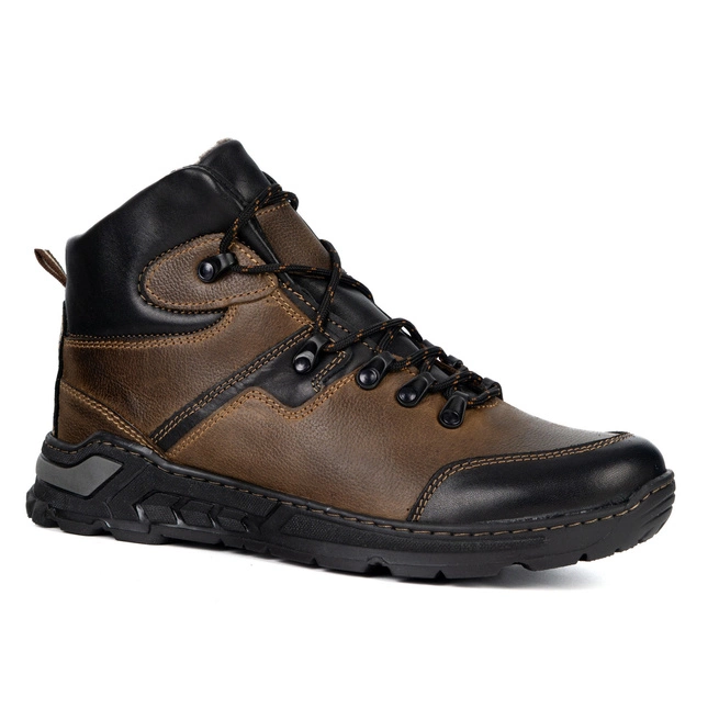 Męskie trzewiki skórzane Olivier 615KNT – model trekkingowy za kostkę brązowe