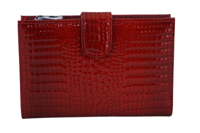 Portfel skórzany damski lakierowany na zatrzask - Czerwony