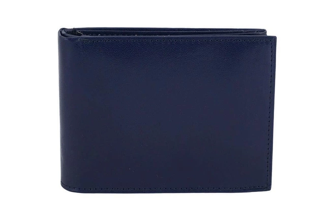 Wnętrze portfela: klasyczny portfel skórzany męski posiada kieszonkę zapinaną na zatrzask, mieszczącą monety oraz bilety i dwie przegrody na banknoty. Druga część portfela, również zapinana na zatrzask, mieści dokument ze zdjęciem, wizytówki, sześć miejsc na karty płatnicze oraz lojalnościowe. Wyodrębniono również dwa duże miejsca na dokumenty lub fotografie najbliższych.